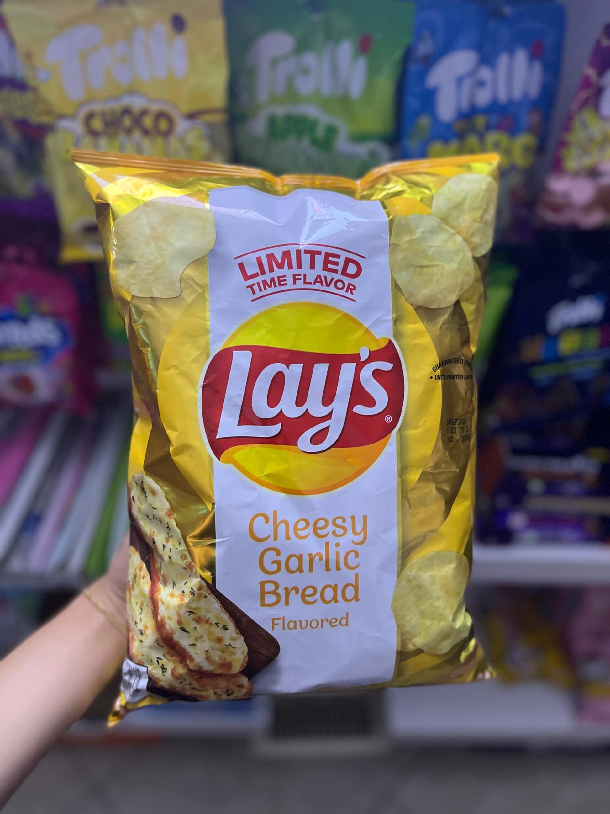 Savor the irresistible taste of Lay's Cheesy Garlic Bread, now in a limited edition 15oz bag! This mouthwatering snack combines the rich, cheesy goodness with the savory flavor of garlic bread, creating the perfect crunch in every bite. Ideal for sharing or enjoying solo, this limited edition won't last long—grab yours before it's gone! #Lays #CheesyGarlicBread #LimitedEdition #SnackTime #15oz #SavorySnacks #CheesyGoodness #GarlicLovers #CrispyDelight #USA #FlavorfulSnacks #SnackFavorites
