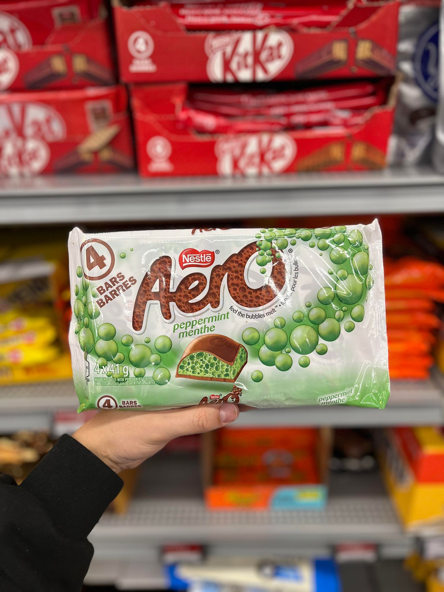 Introducing Aero Peppermint, now available in a convenient pack of 4 bars, each weighing 41g. Experience the delightful combination of smooth milk chocolate and refreshing peppermint bubbles that make Aero Peppermint a beloved Canadian treat.